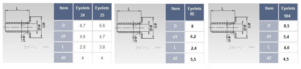 Eyelets No. 24/25 / Eyelets No. 8E / Eyelets No. 904